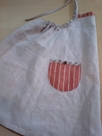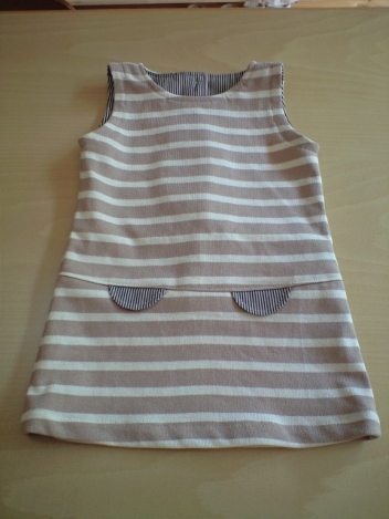 小さくなったワンピースの袖をカットして半袖にし、丈もギリギリまでおろしました。