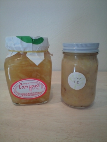 右の生姜とバナナのジャムは、ヨーグルトに合うとか。数あるジャム屋の中から地味めなものをチョイスしました。