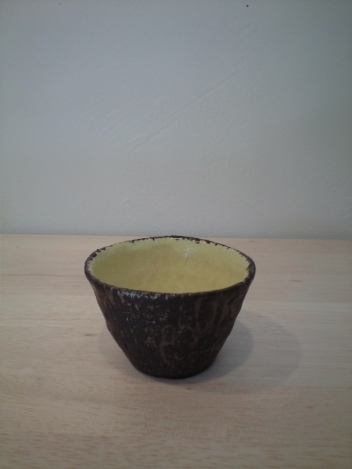 渋い色に対し、中がとても鮮やかな黄色の茶碗。価格もお手ごろ価格の800円でした。