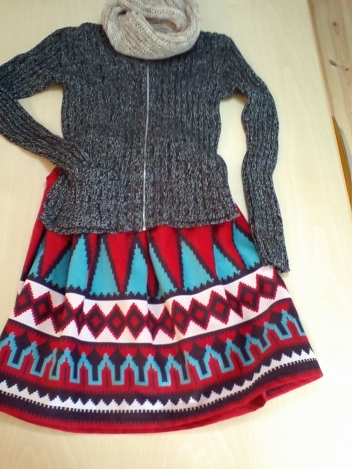 130㎝サイズのスカート。久しぶりの赤です。カラータイツで思い切り冒険してみては?