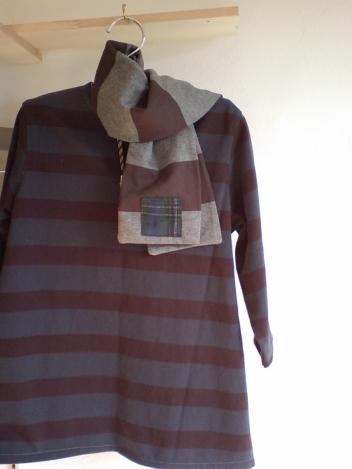 幅広ボーダーのスカートです。いや、エプロン?