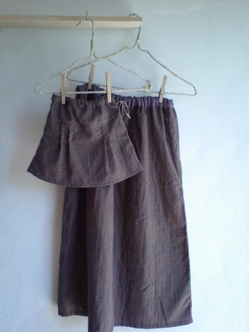 同布で、ママのスカート製作中です。シックな色合いなので、重ね着などして秋まで着回せるのでは?